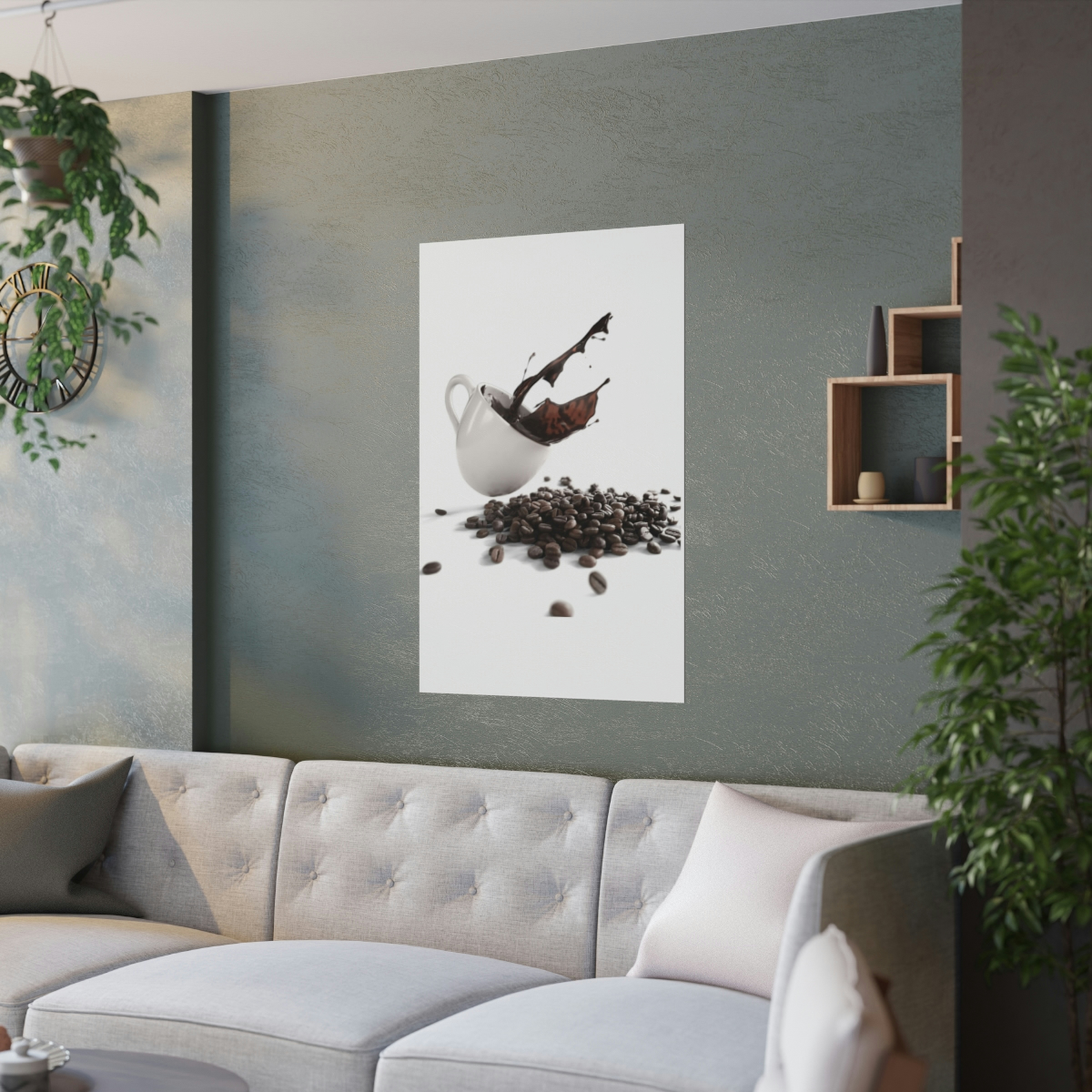 Coffee Beans And Spilled Coffee Liquid PNG Transparent Satin Posters (210gsm)