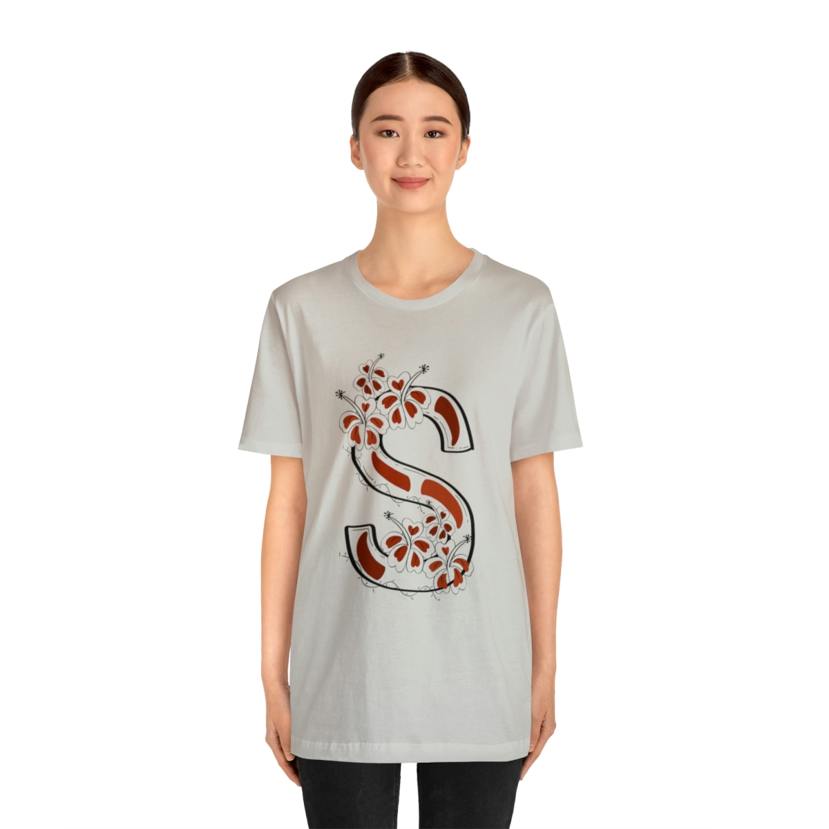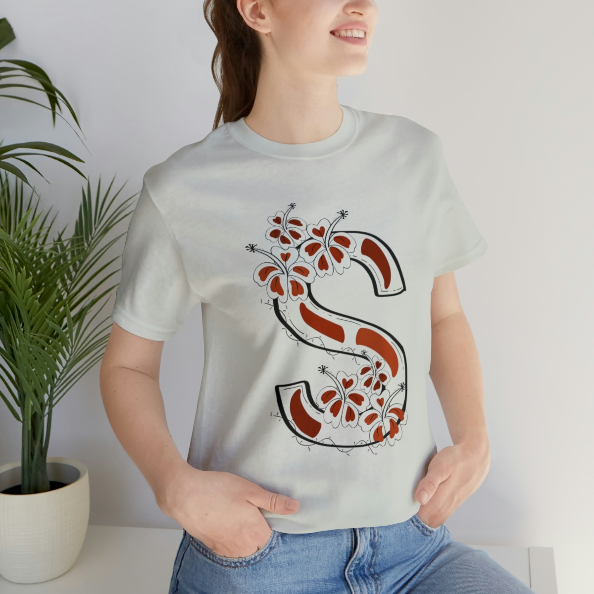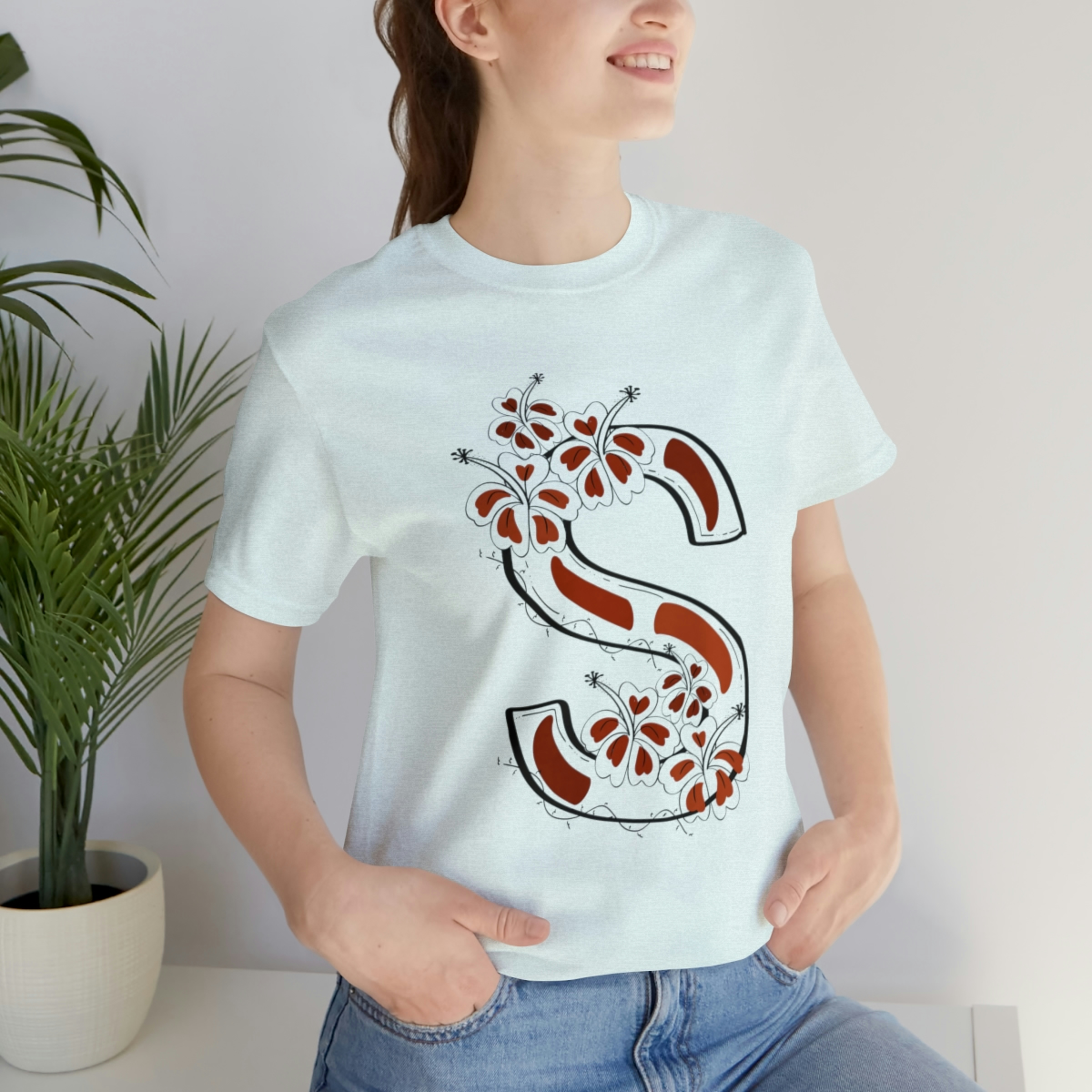Cute Aesthetic Flower Alphabet Line Art Unisex Jersey Short Sleeve Tee