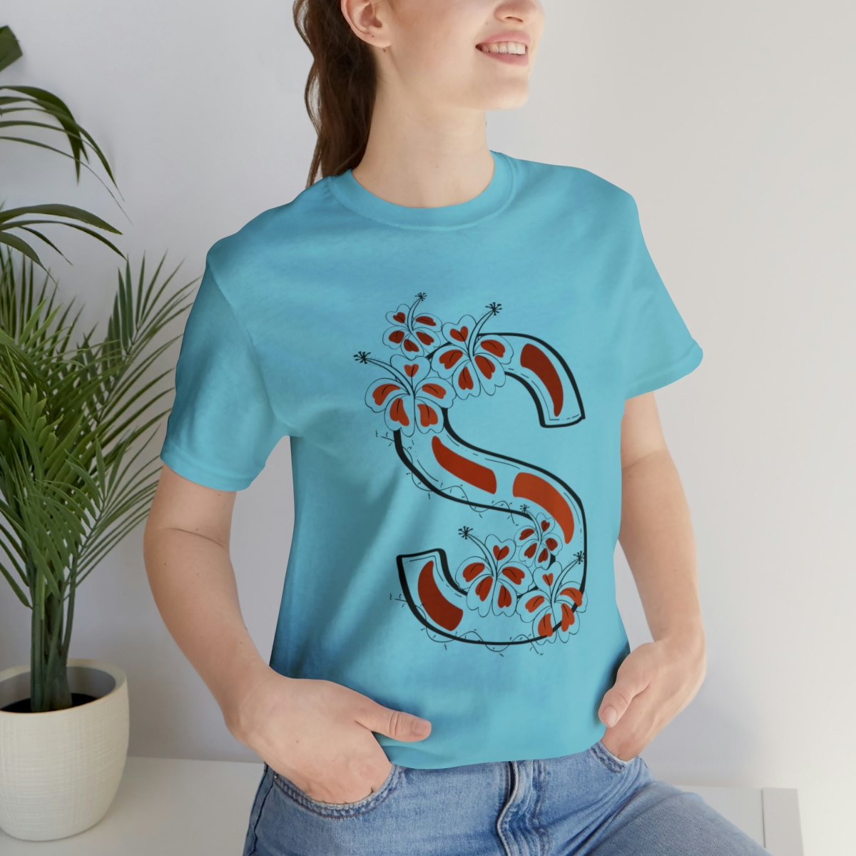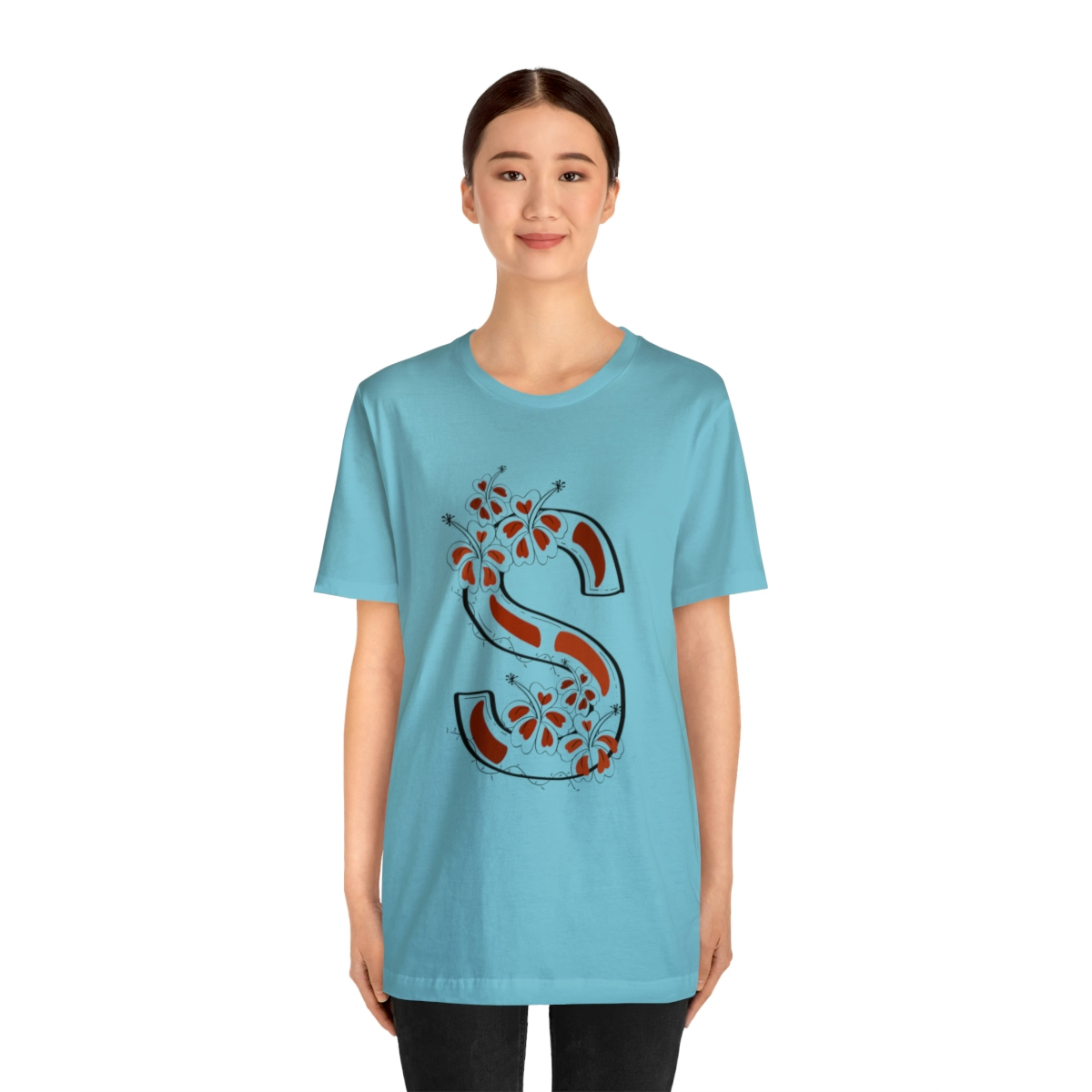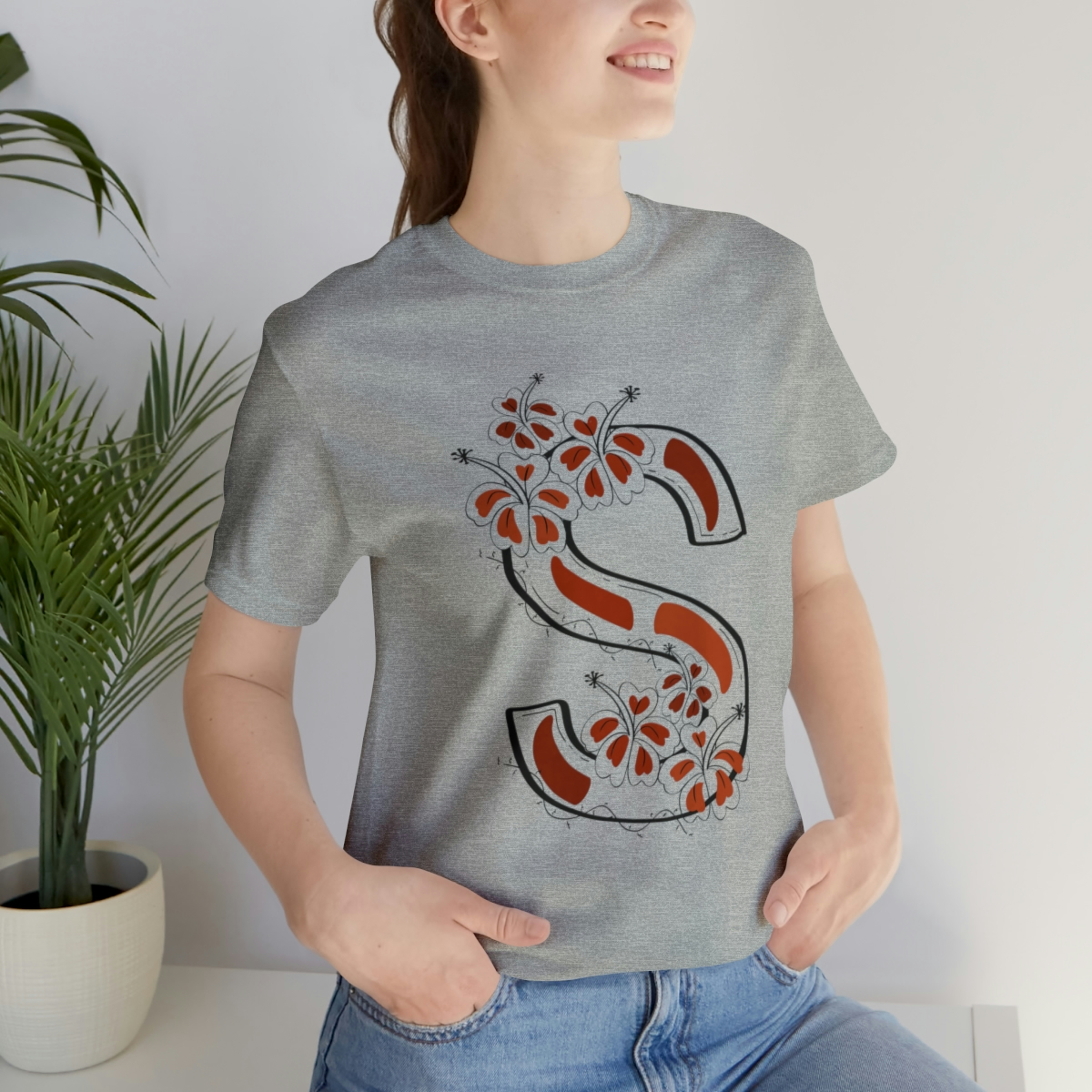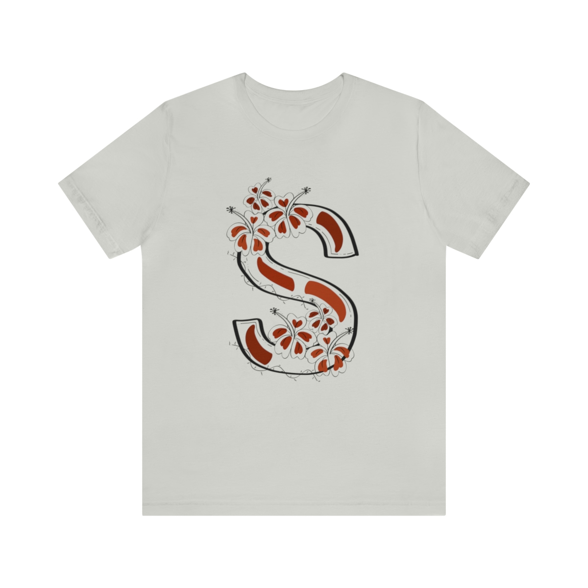Cute Aesthetic Flower Alphabet Line Art Unisex Jersey Short Sleeve Tee