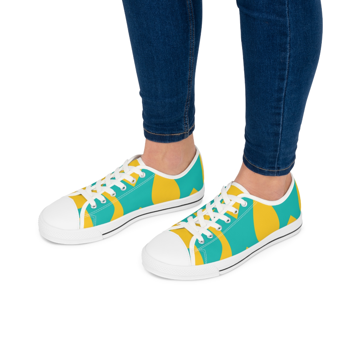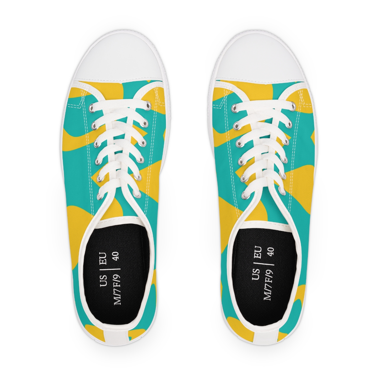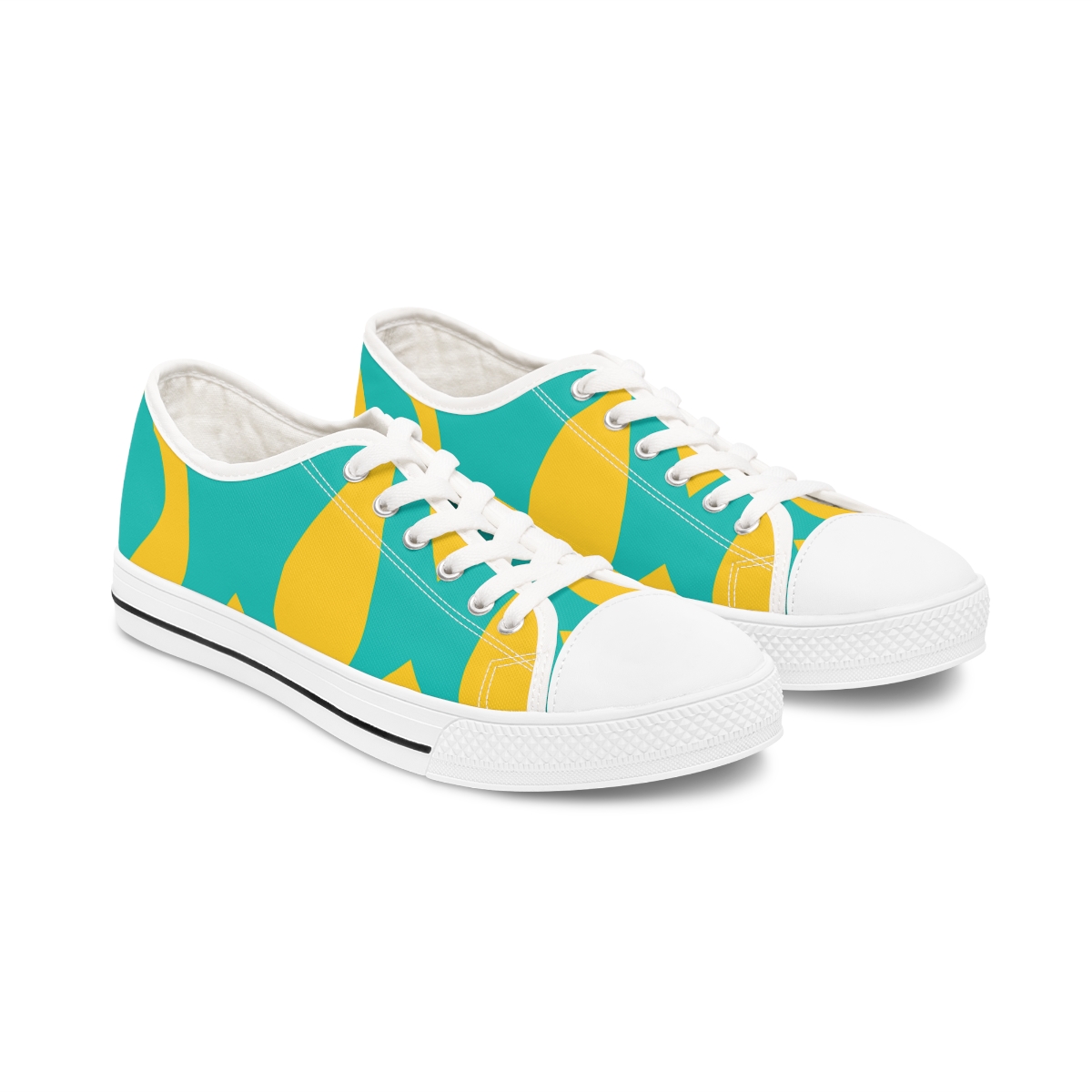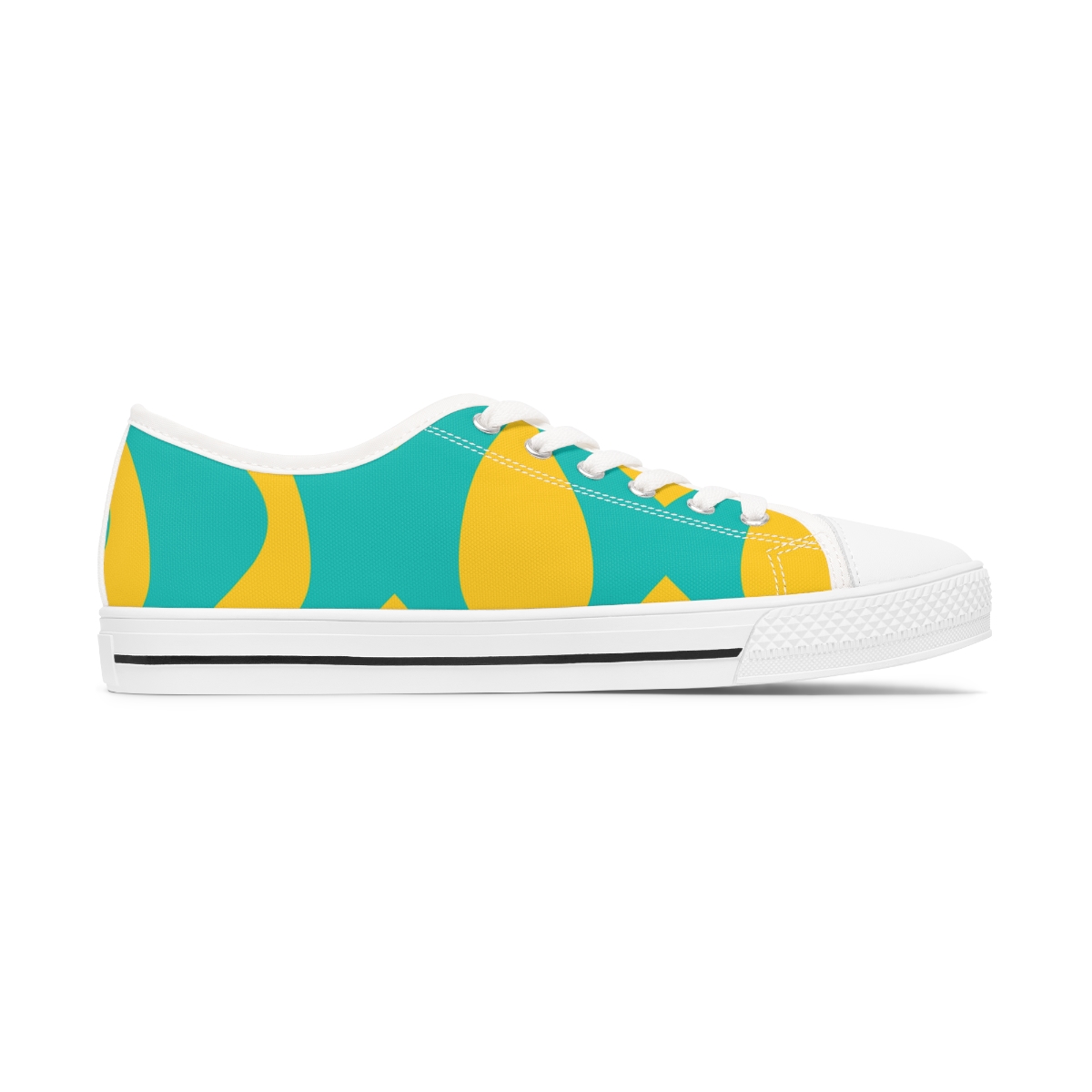 Made with breathable polyester canvas and featuring hi-poly deodorant memory foam insoles, these women’s low top sneakers bear all the marks of an awesome shoe. Choose between black or white sole and laces, and enjoy the silver metal eyelets along with the lace-up closure. Add your designs and bring a bespoke staple to life.