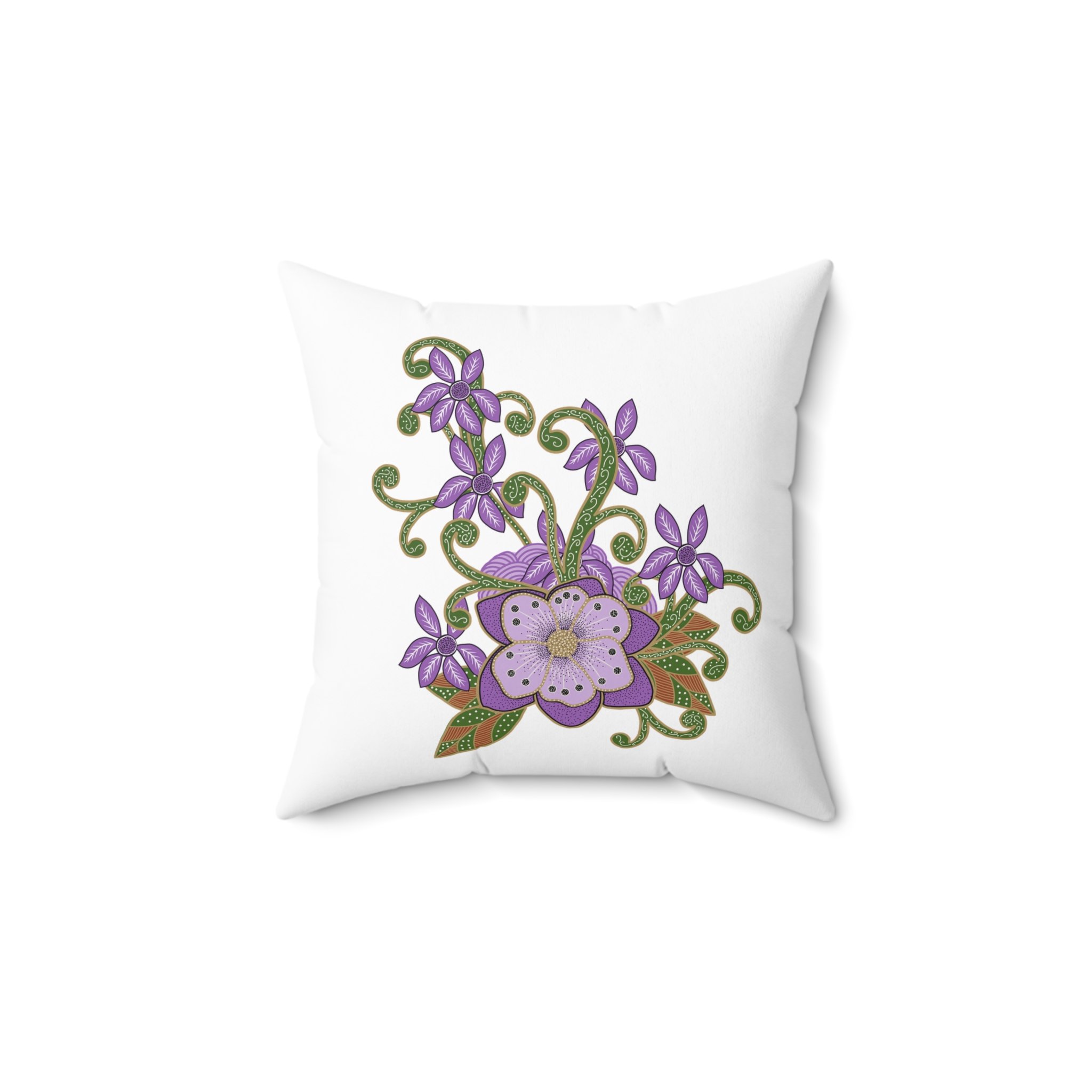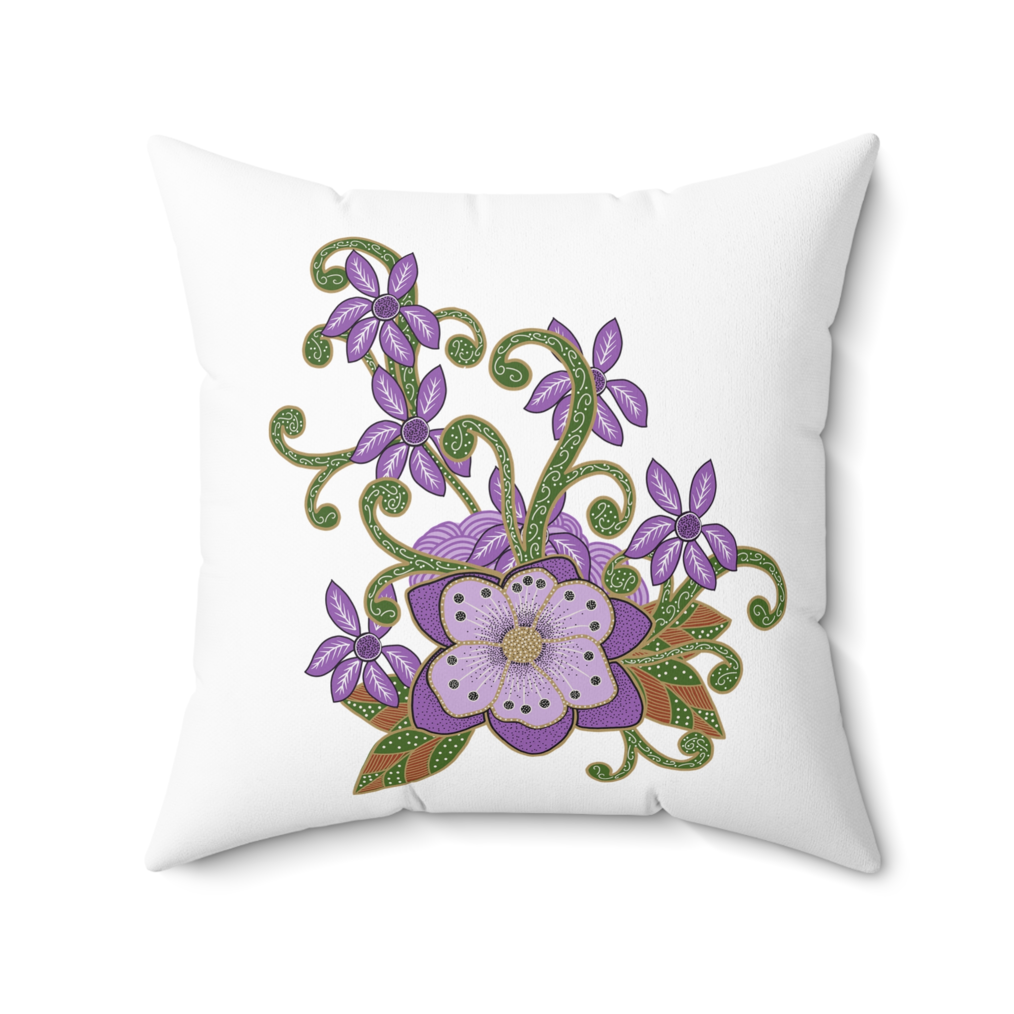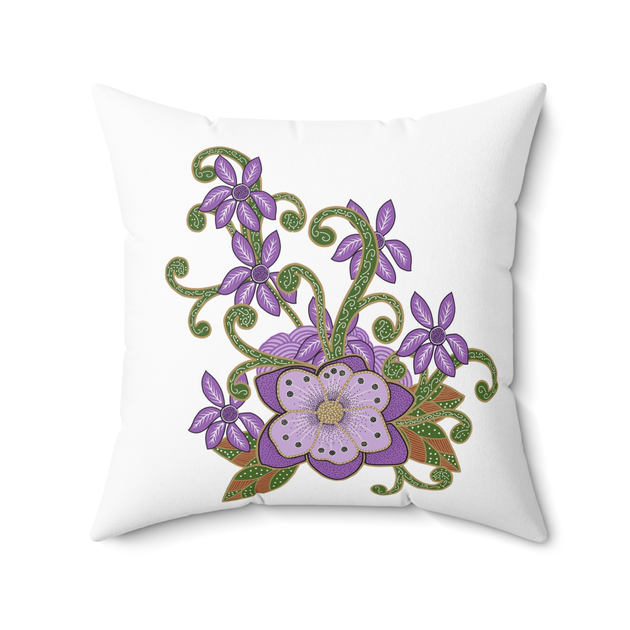 Indonesian Batik Purple Flower Pattern, Spun Polyester Square Pillow