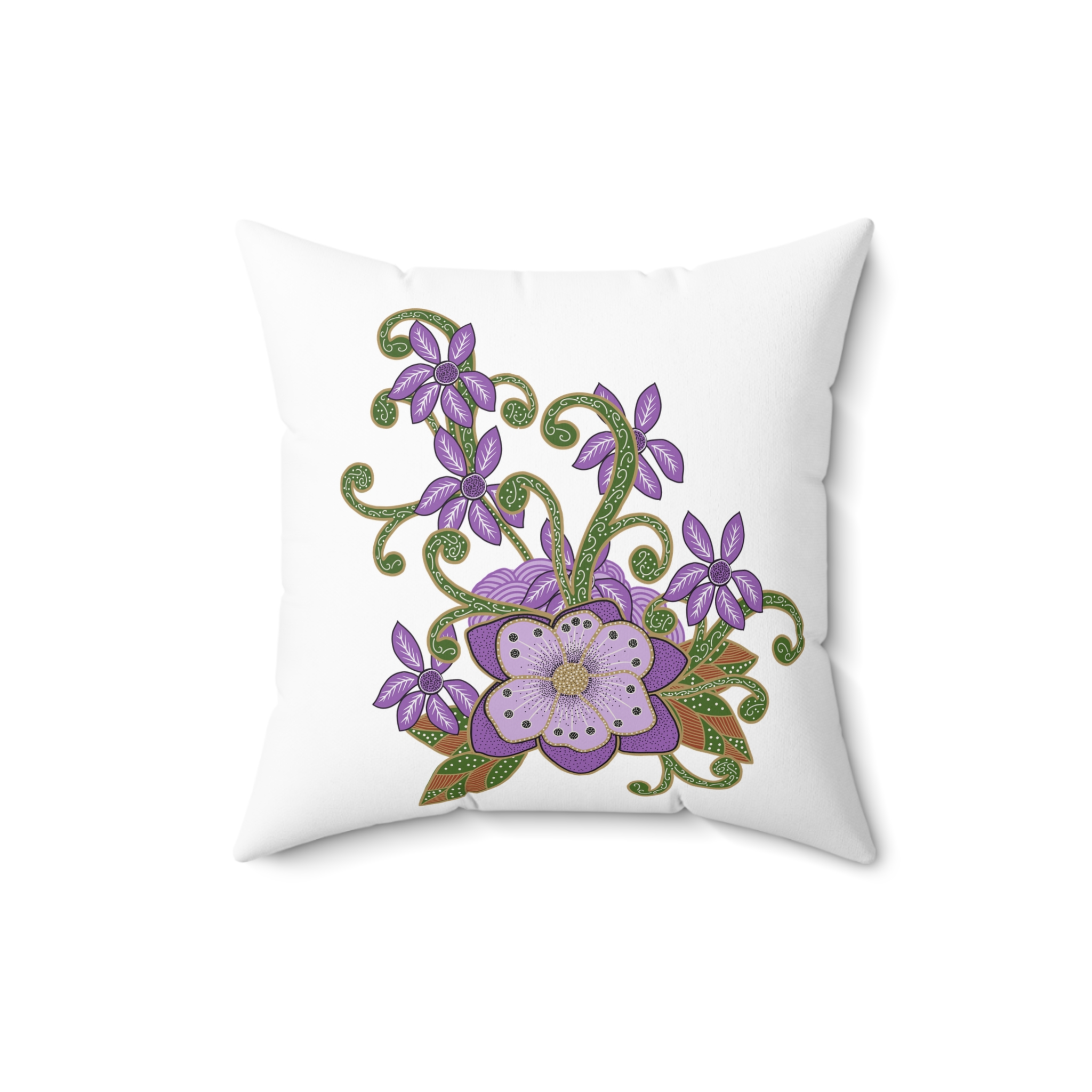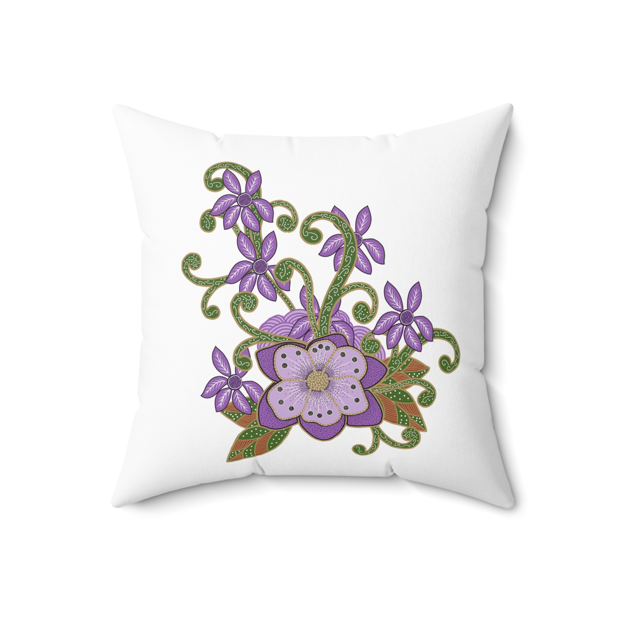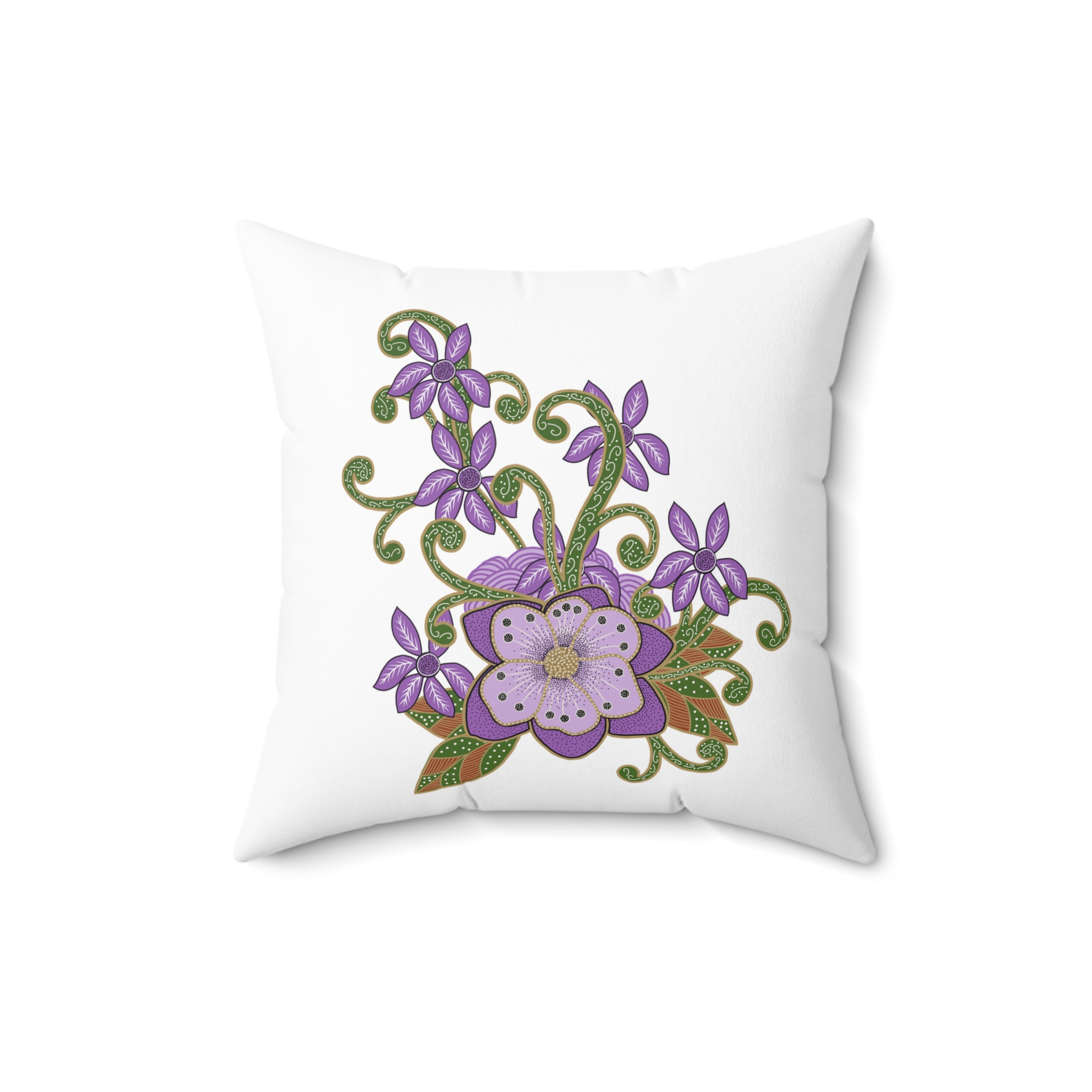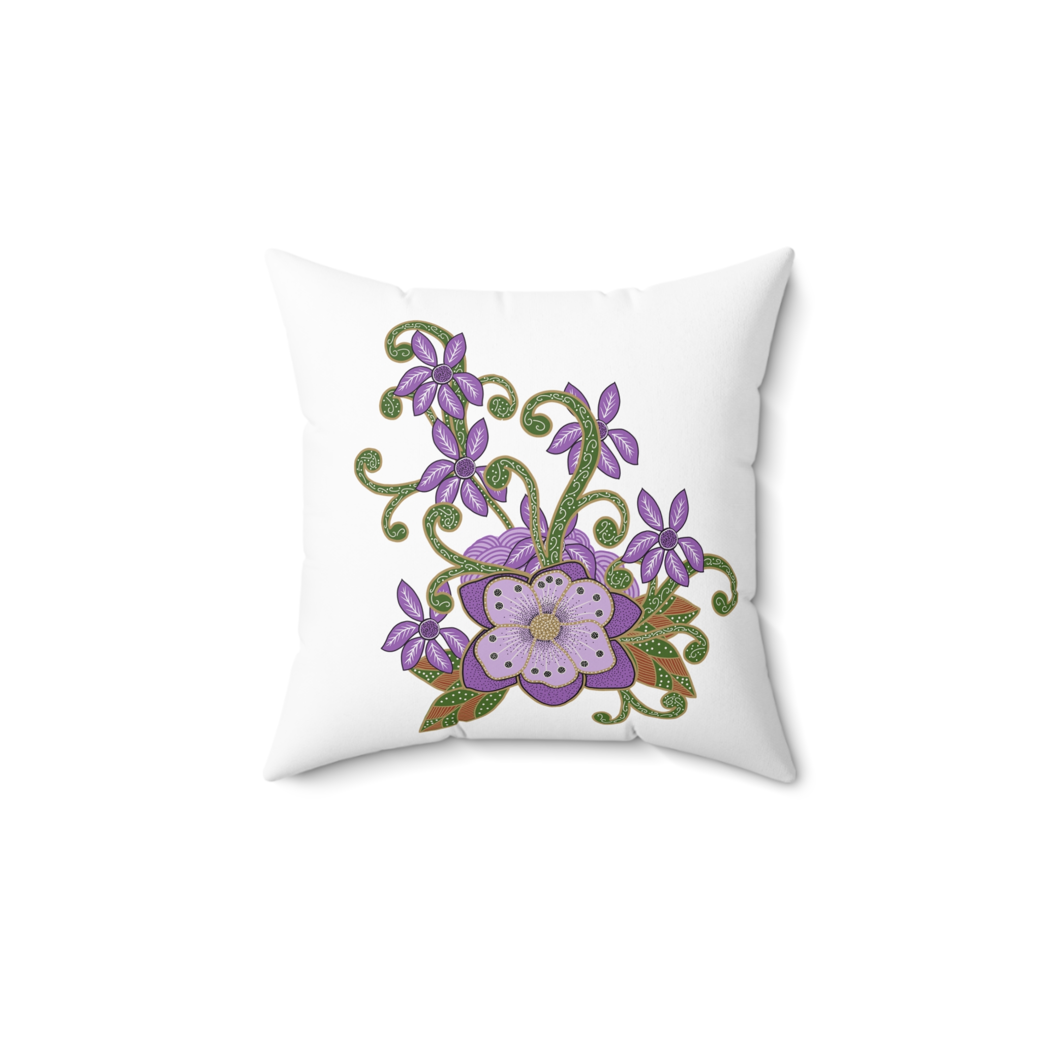 Indonesian Batik Purple Flower Pattern, Spun Polyester Square Pillow