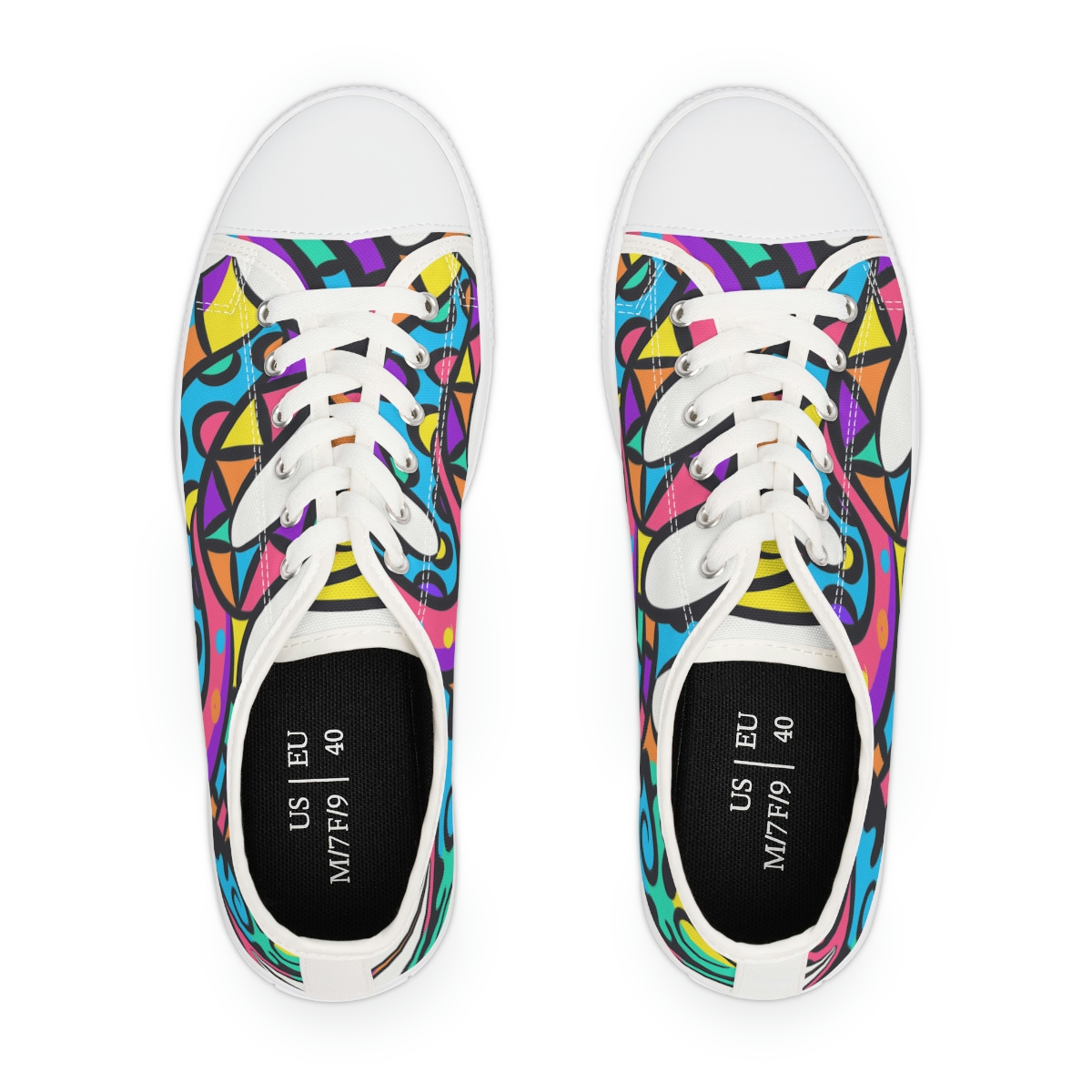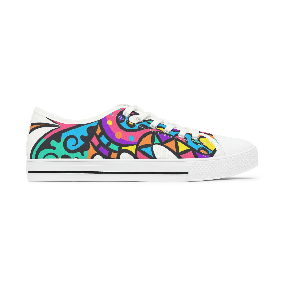 Made with breathable polyester canvas and featuring hi-poly deodorant memory foam insoles, these women’s low top sneakers bear all the marks of an awesome shoe. Choose between black or white sole and laces, and enjoy the silver metal eyelets along with the lace-up closure. Add your designs and bring a bespoke staple to life.