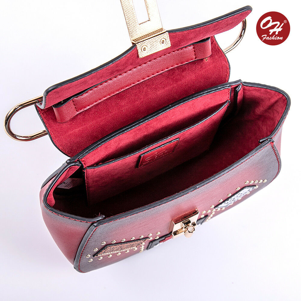 Pattern: Solid,Bag Height:7 in,Character:Manufacturer Color:Red; Black; Gray,Handle Style:Shoulder Strap,Lining Material:Fabric, Leather,Exterior Material:Faux Leather, Polyester,Brand:OH Fashion Hardware Material:Gold-Plated Lining Color: Multicolor Theme: Designer Product Line:OH Fashion
